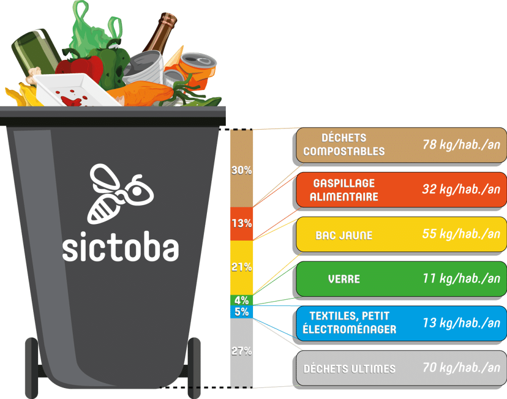 Afin de mesurer la pertinence des actions mises en place sur le territoire, le SICTOBA assure le suivi de l’évolution des quantités de déchets collectés et traités. Font l’objet d’un suivi :