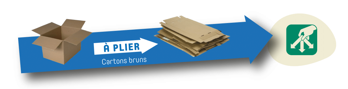 Après la collecte avec le reste des emballages, le carton est séparé des autres déchets après passage en centre de tri. Il est ensuite transporté vers une papeterie pour y être recyclé.
