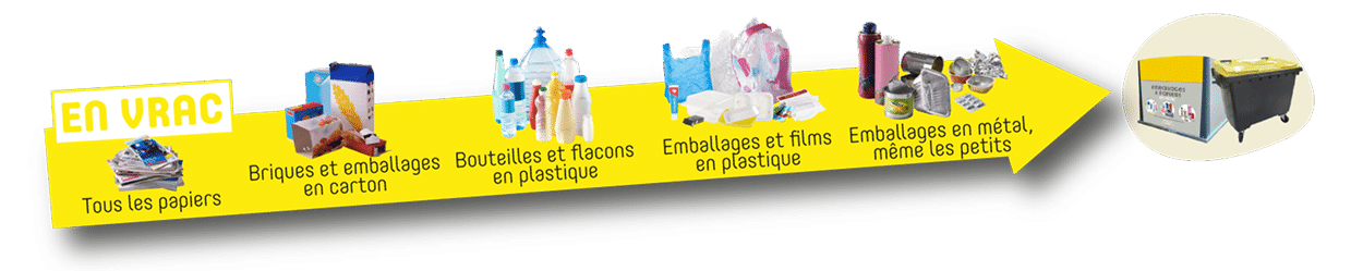 Les emballages doivent être déposés dans le bac jaune :