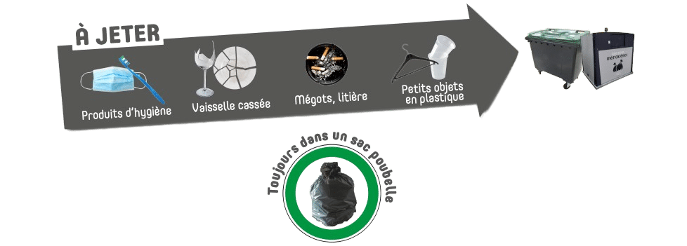 Les ordures ménagères résiduelles sont les déchets restants après avoir effectué le tri. Il s’agit pour l’essentiel de papiers souillés, articles d’hygiène, litières minérales, vaisselle cassée, contenu de cendrier…